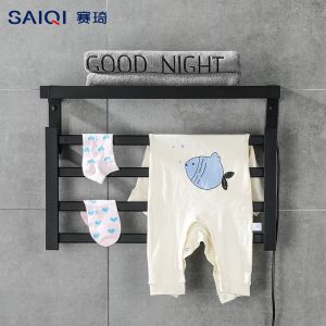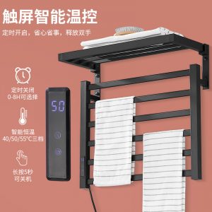 the Black No Drill Wall-mounted Electric Heated Towel Rack with Intelligent Touch Screen and Aluminum Alloy Drying Shelf for your bathroom or ensuite.