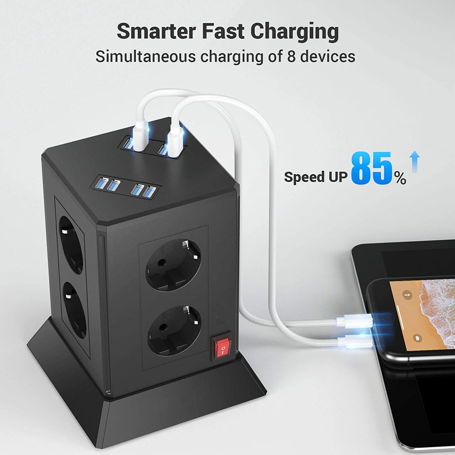 European Standard Tower Socket Vertical Socket with USB Charging Socket Multi-function Socket and Creative Desktop Socket