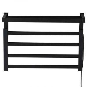 the Black No Drill Wall-mounted Electric Heated Towel Rack with Intelligent Touch Screen and Aluminum Alloy Drying Shelf for your bathroom or ensuite.